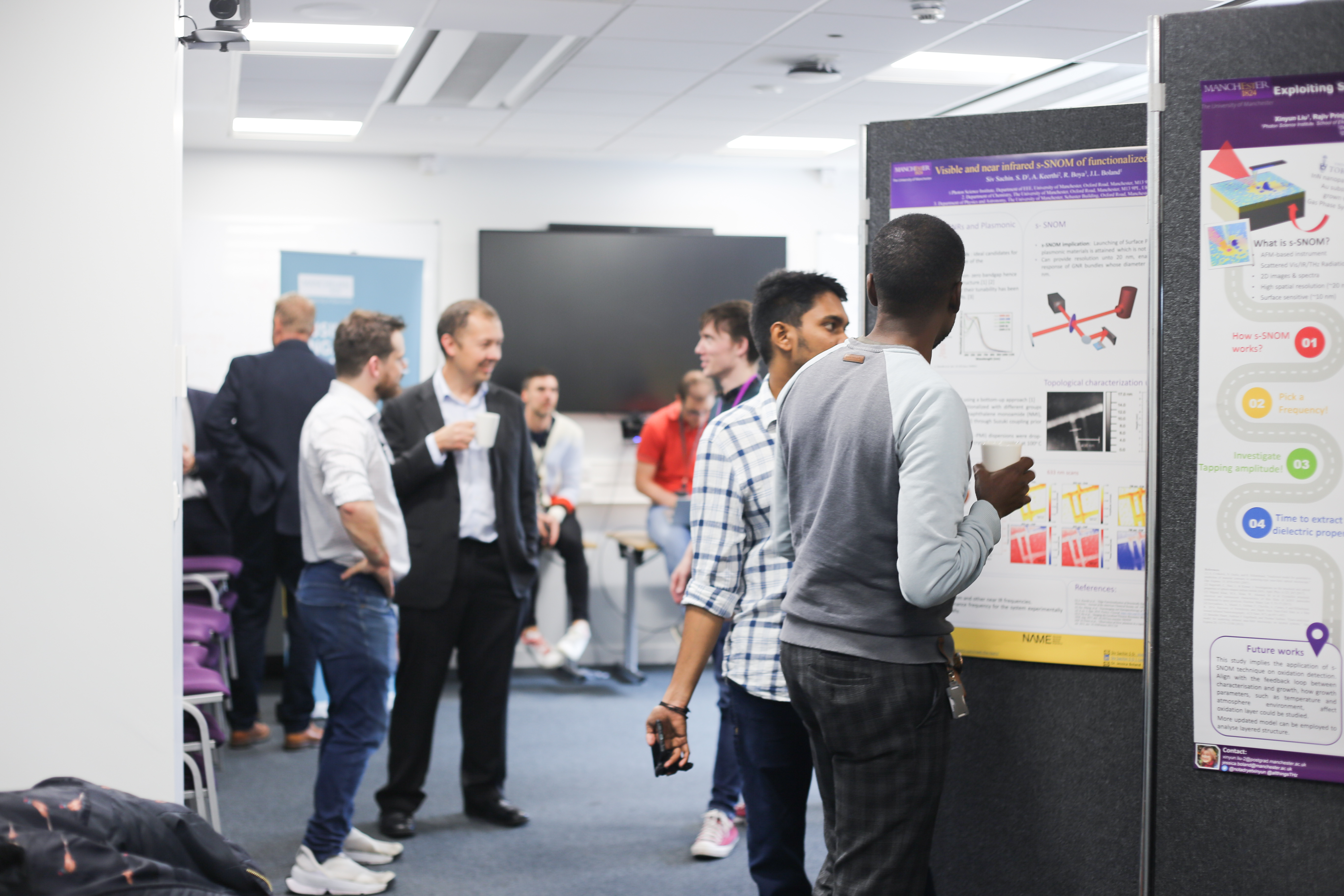 During the launch event, Prof Richard Curry (Vice-Dean for Research and Innovation, University of Manchester) and Dr Peter Thompson (CEO of NPL) gave speeches on the future of this kit and we had a poster session along side to showcase our knowledge on current s-SNOM instruments.